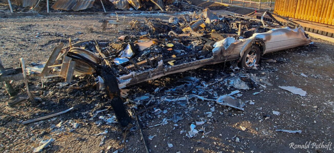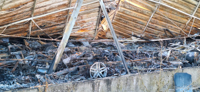 Tijdens de brand waren meerdere explosies te horen, vermoedelijk afkomstig van gasflessen en autobanden. Een naastgelegen loods vatte eveneens vlam, maar die brand kon snel worden geblust waardoor verdere schade werd voorkomen.